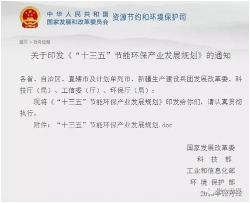 "十三五"節(jié)能環(huán)保產業(yè)發(fā)展規(guī)劃